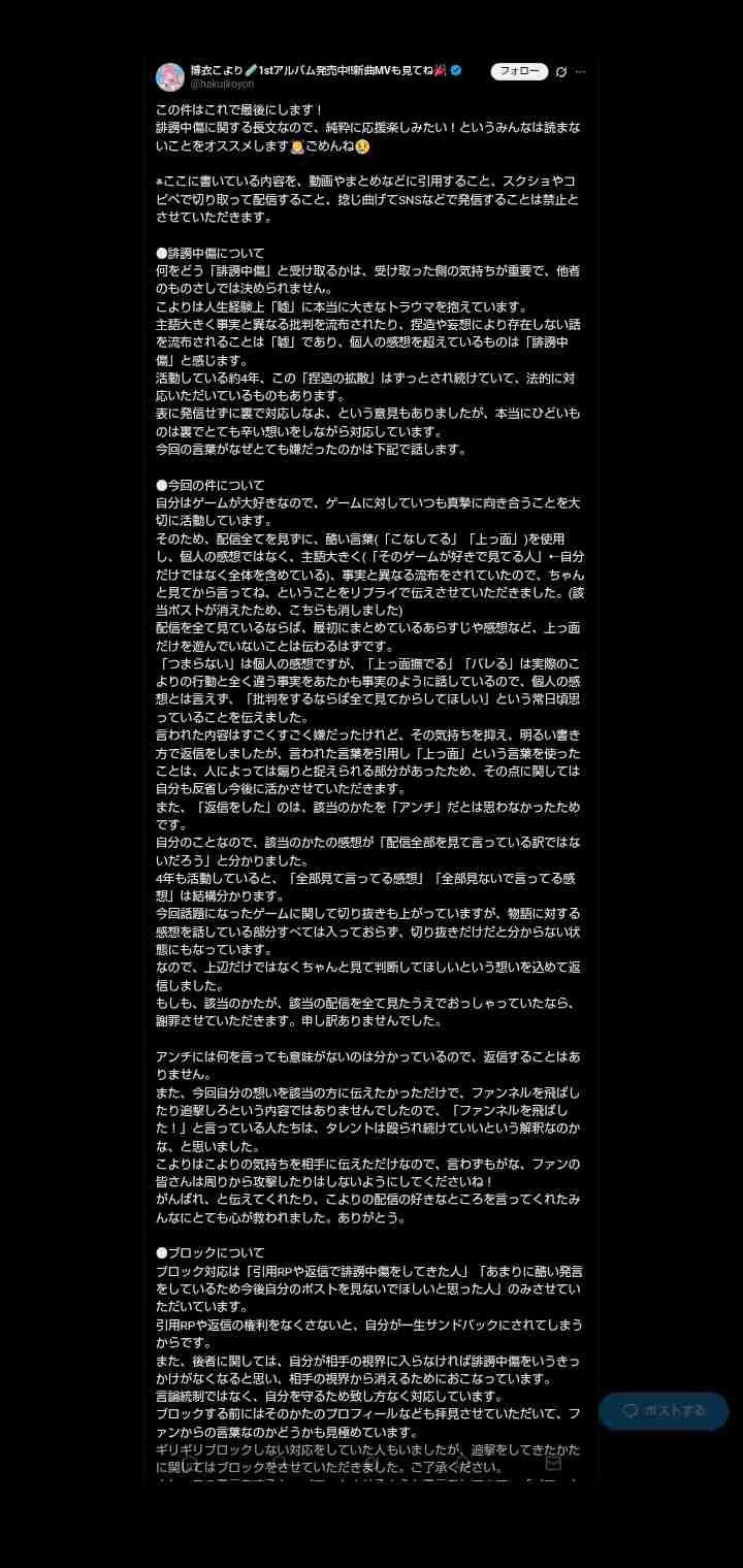 結局行きつく先は切り抜きなんだから嫌なら運営直々にはあちゃまの発言について弁解しろって