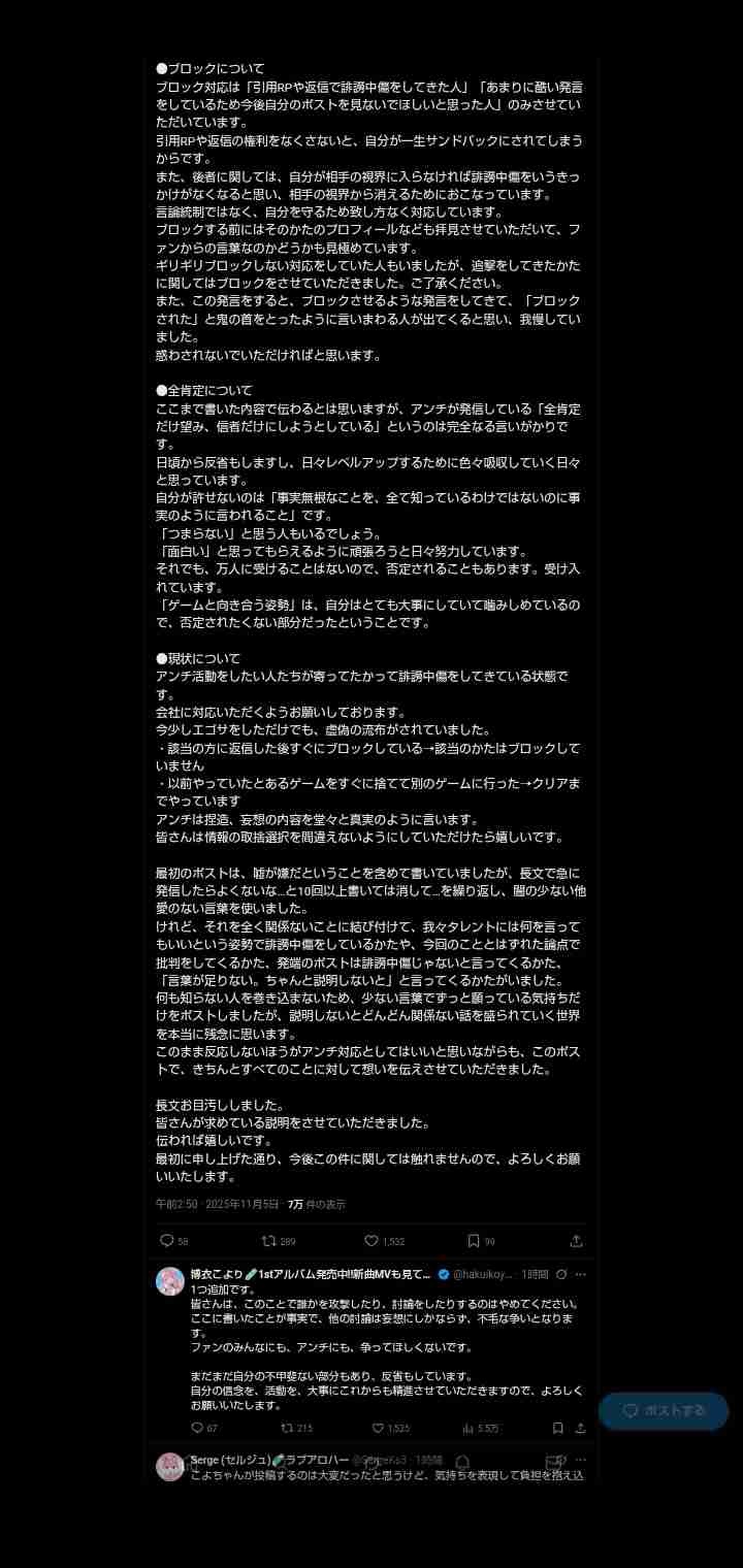 [2025/11/01 00:00開始] 応援してくれているみなさんと誹謗中傷をしている人へ – Miko Ch. さくらみこ