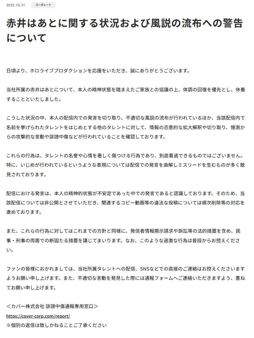 カバー株式会社 @cover_corp (2025/10/31 22:00:44)