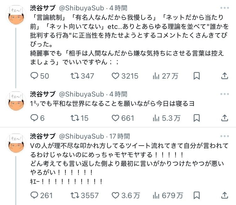 ライバーの方が相手が嫌な気持ちになるツイートしてるんやが