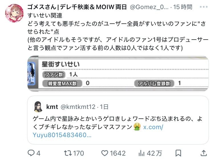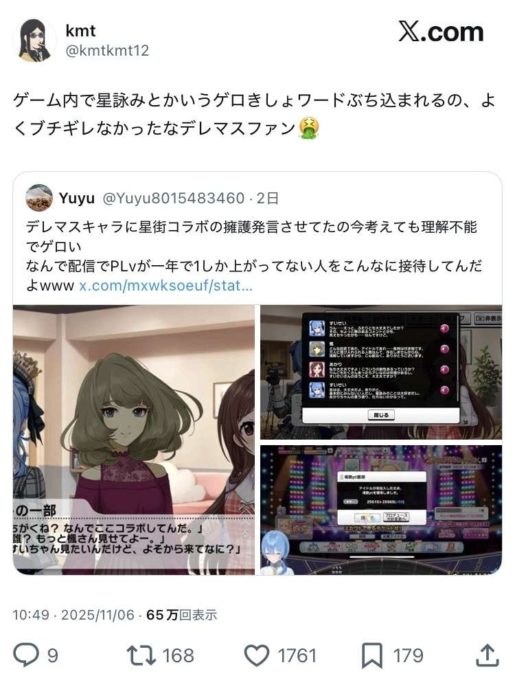 エッヂのバチャ豚スレで「デレステユーザーは皆ホロライブコラボ歓迎してた」って言われてレスバに負けたのに普通に嘘でめっちゃ悔しいわ