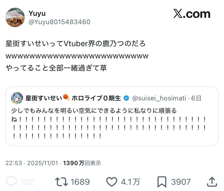 これを責めるべくは仕事しただけの星街すいせいではなくコラボを依頼した運営なのでは?