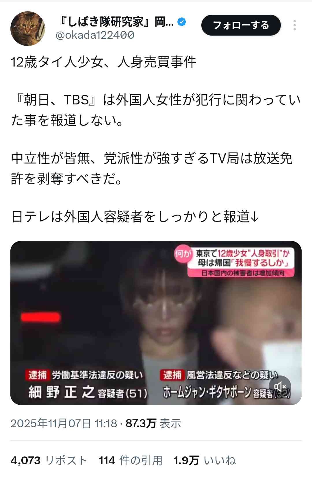 なおタイ人らしき母親も一緒に逮捕されてる模様