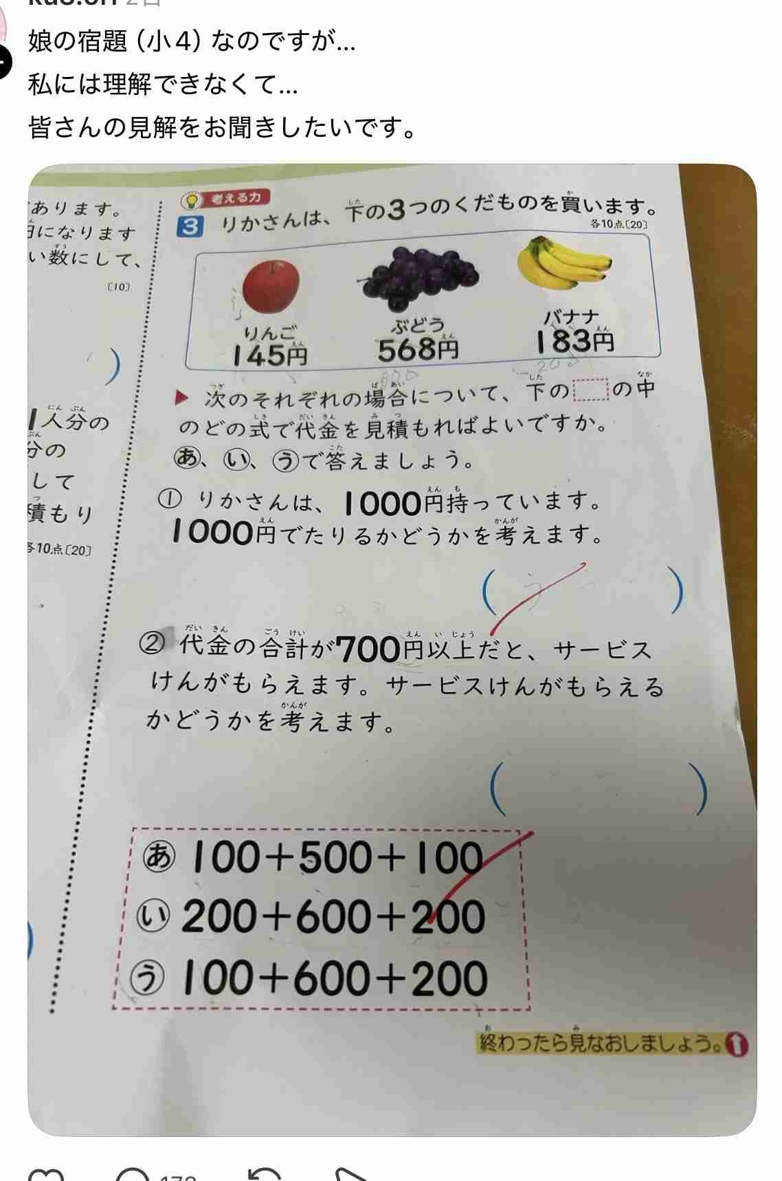 わかるがそれだけが答えじゃない計算を問題にするのはどうなん