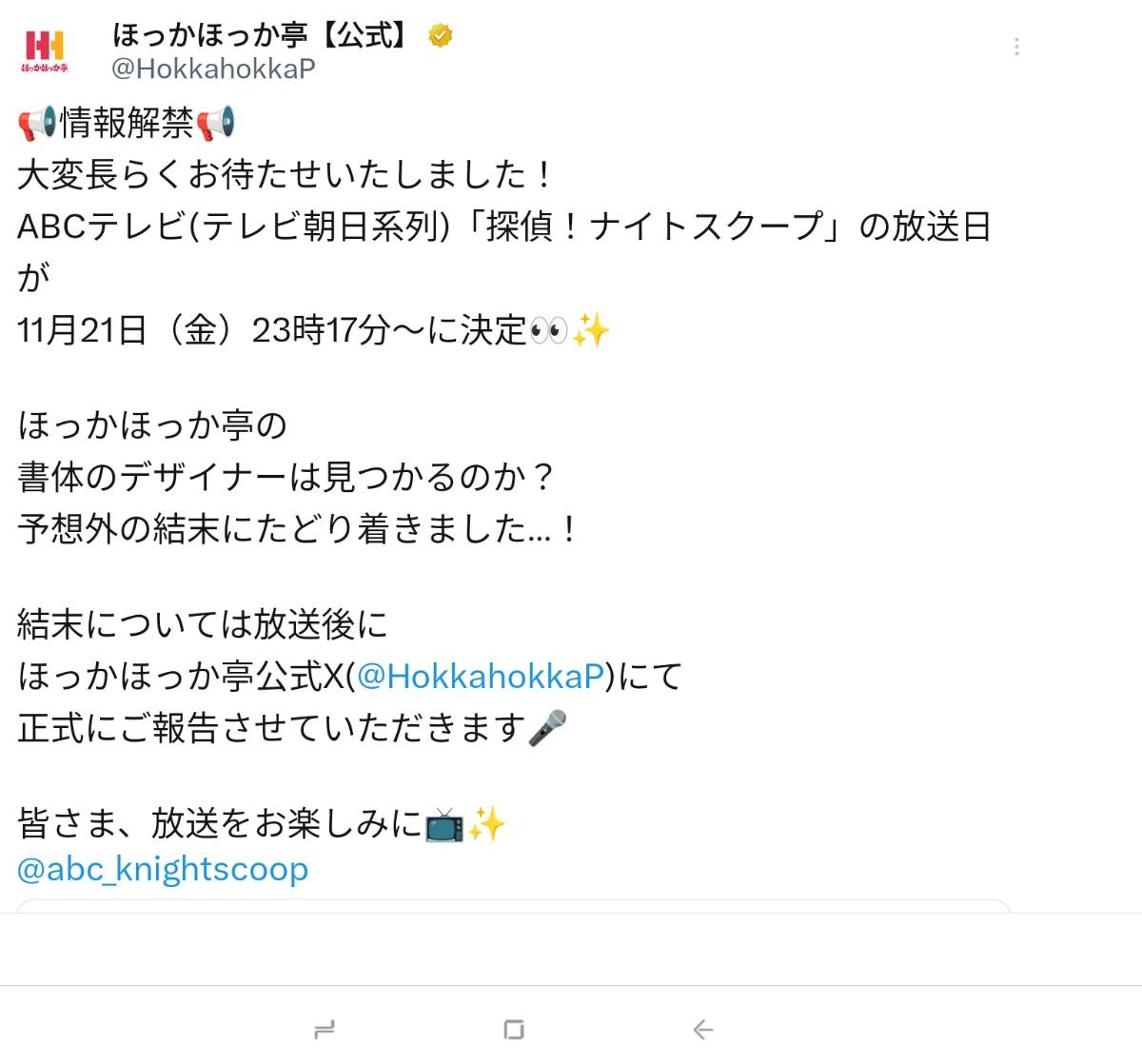 探偵ナイトスクープが見つけてくれましたと宣伝ツイート