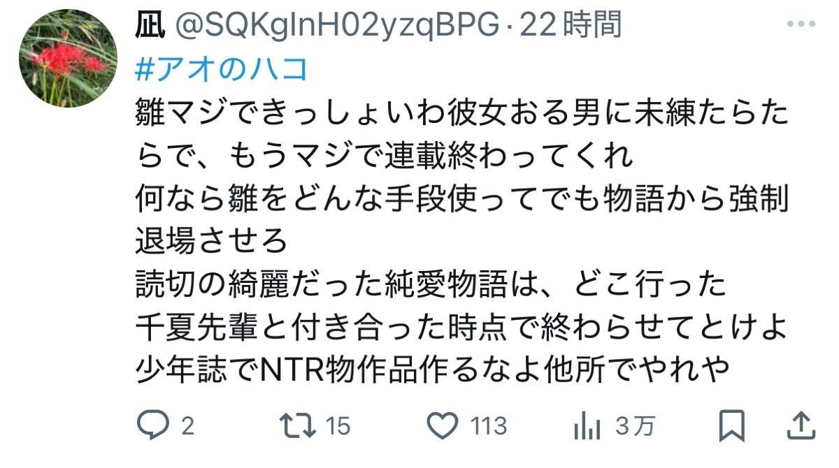 連載始めた時がちょうどコロナ禍で両親海外で不在、歳近い異性が同棲設定とか昨今の流れ読めて無さすぎてアホかよって言われてたのにまだやってたんか