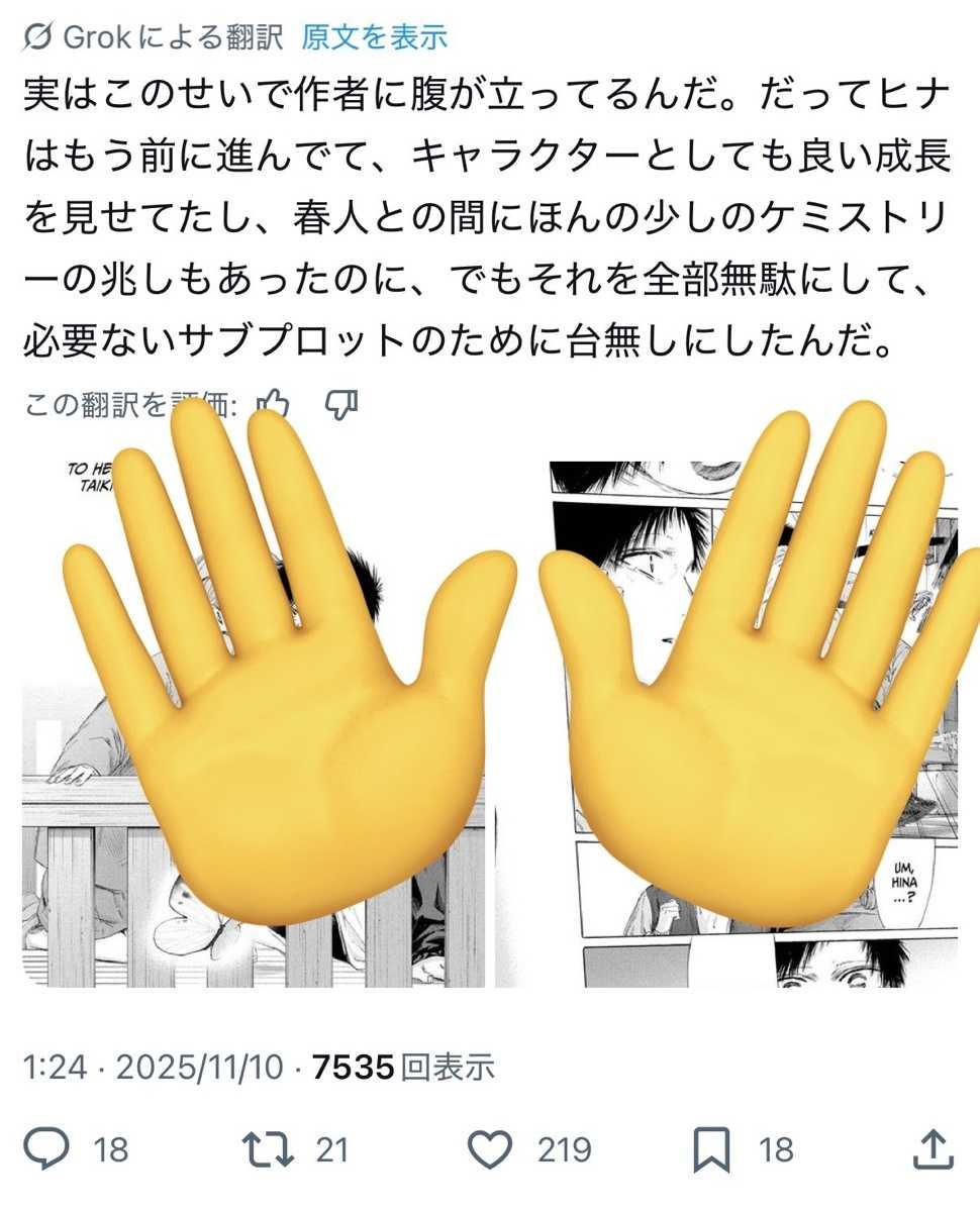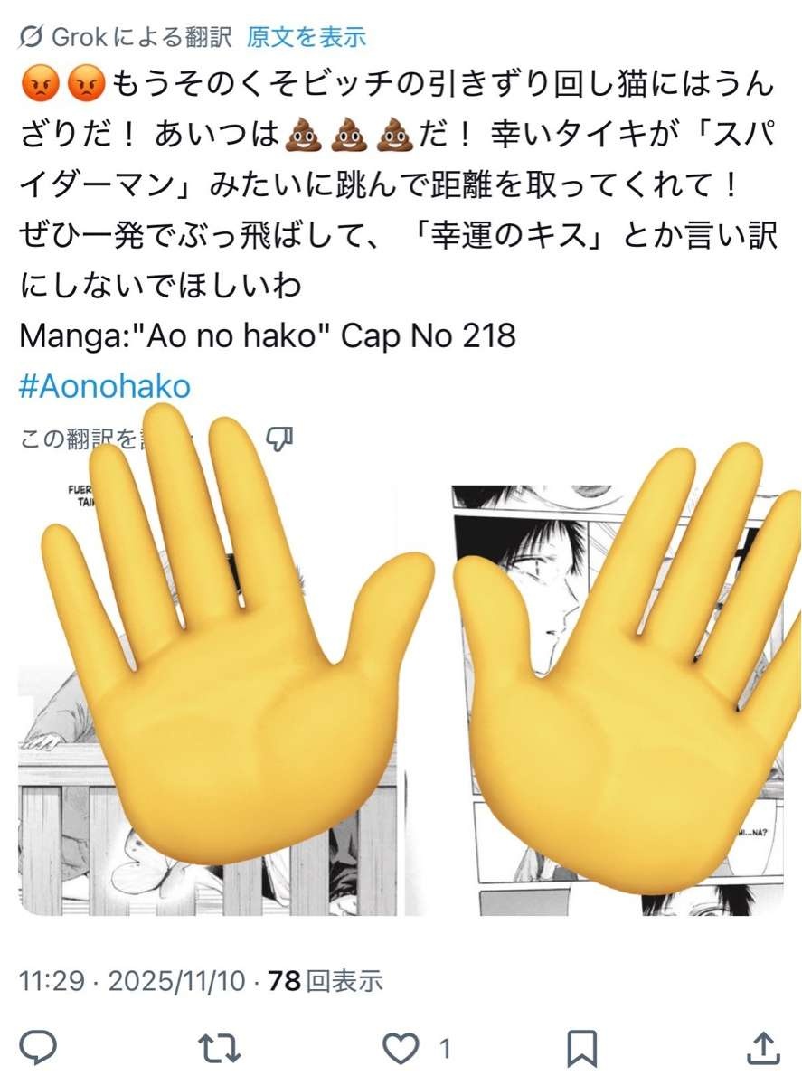 なんで本誌スクショ部分を👐で隠しとるんや?