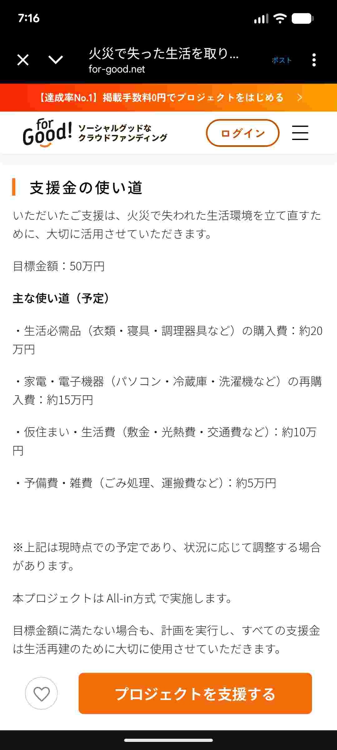 火災保険あるのにクラファンかよ