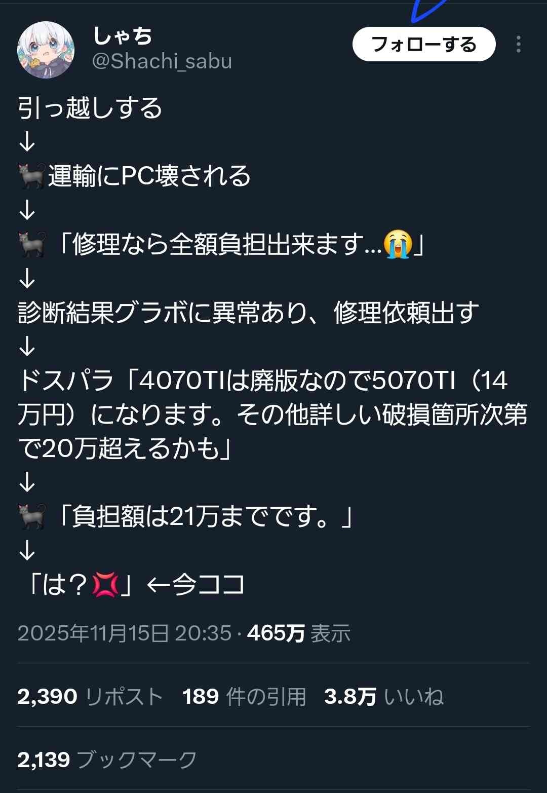 21万出してくれるなら許したれよ