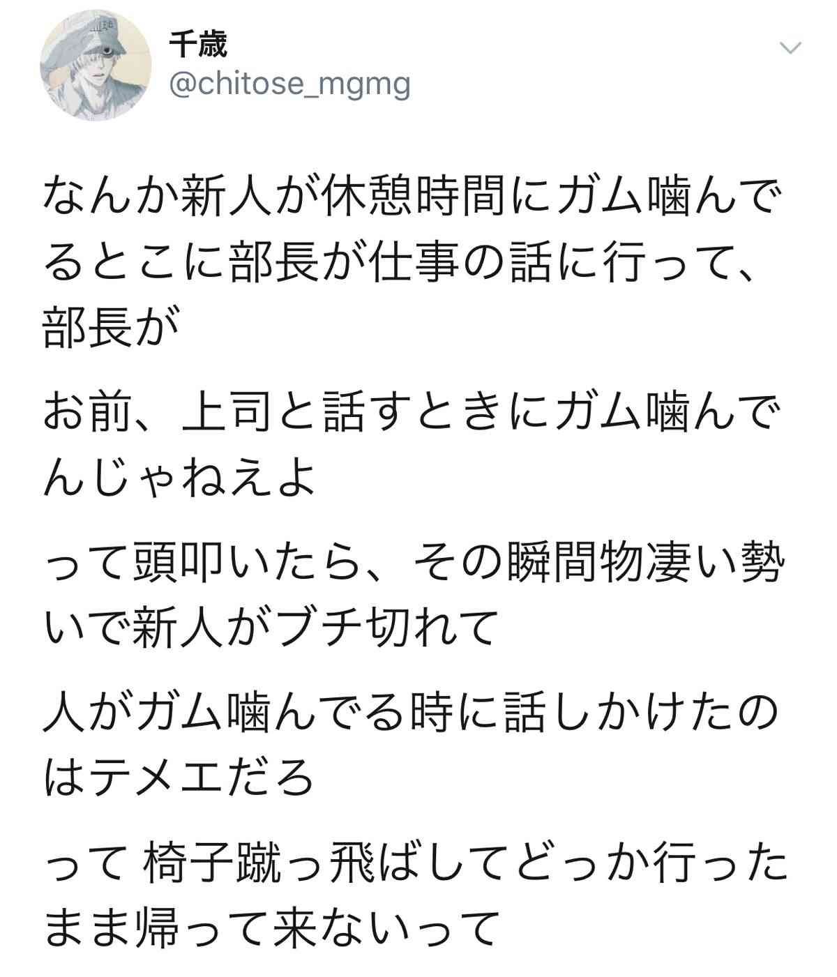相手が喋ってる途中でもずっとガム噛んでたんやろ