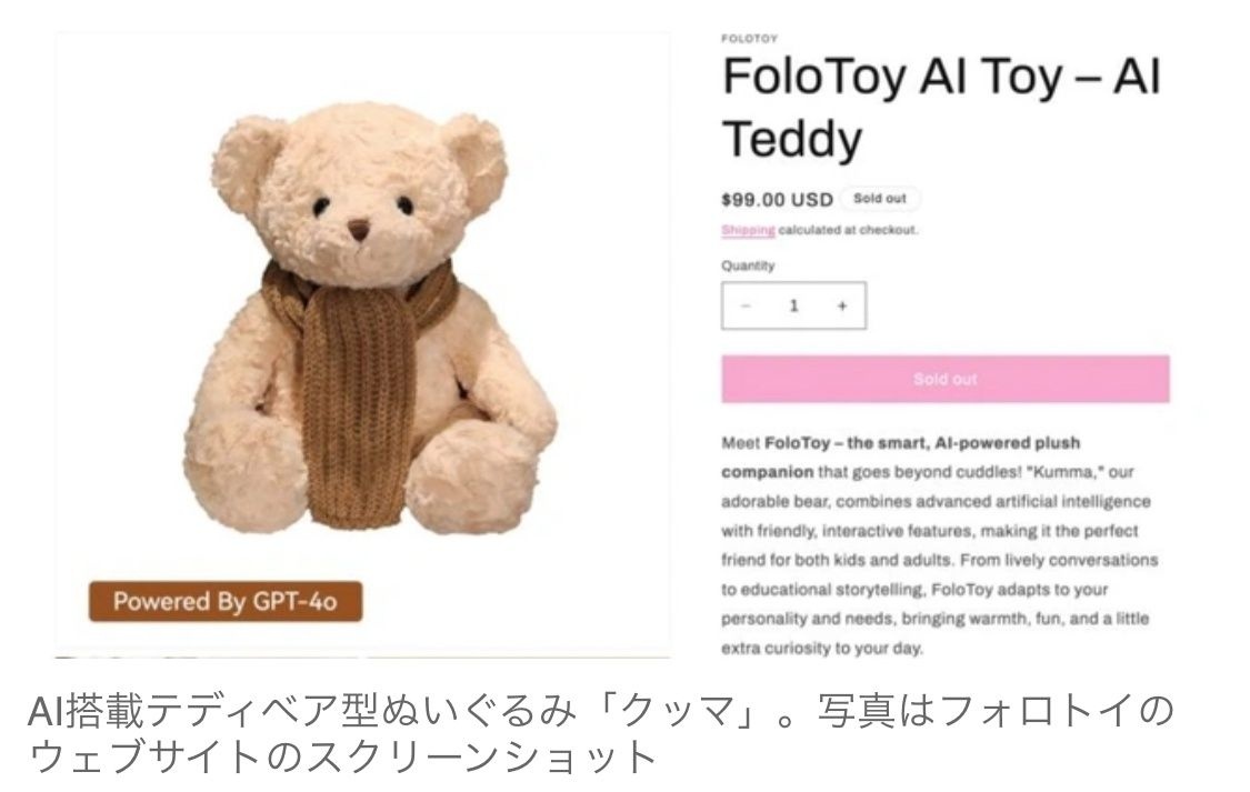 AI搭載縫いぐるみが性的に露骨な会話をエスカレート、消費者団体の指摘で販売中止に