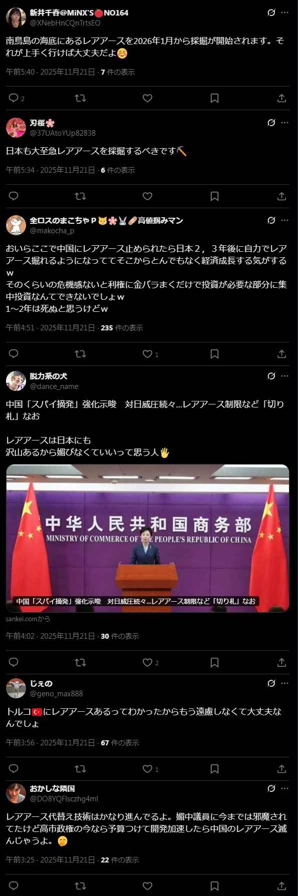 マジで高市日本でレアメタルの精製できるって思ってそうなの怖い