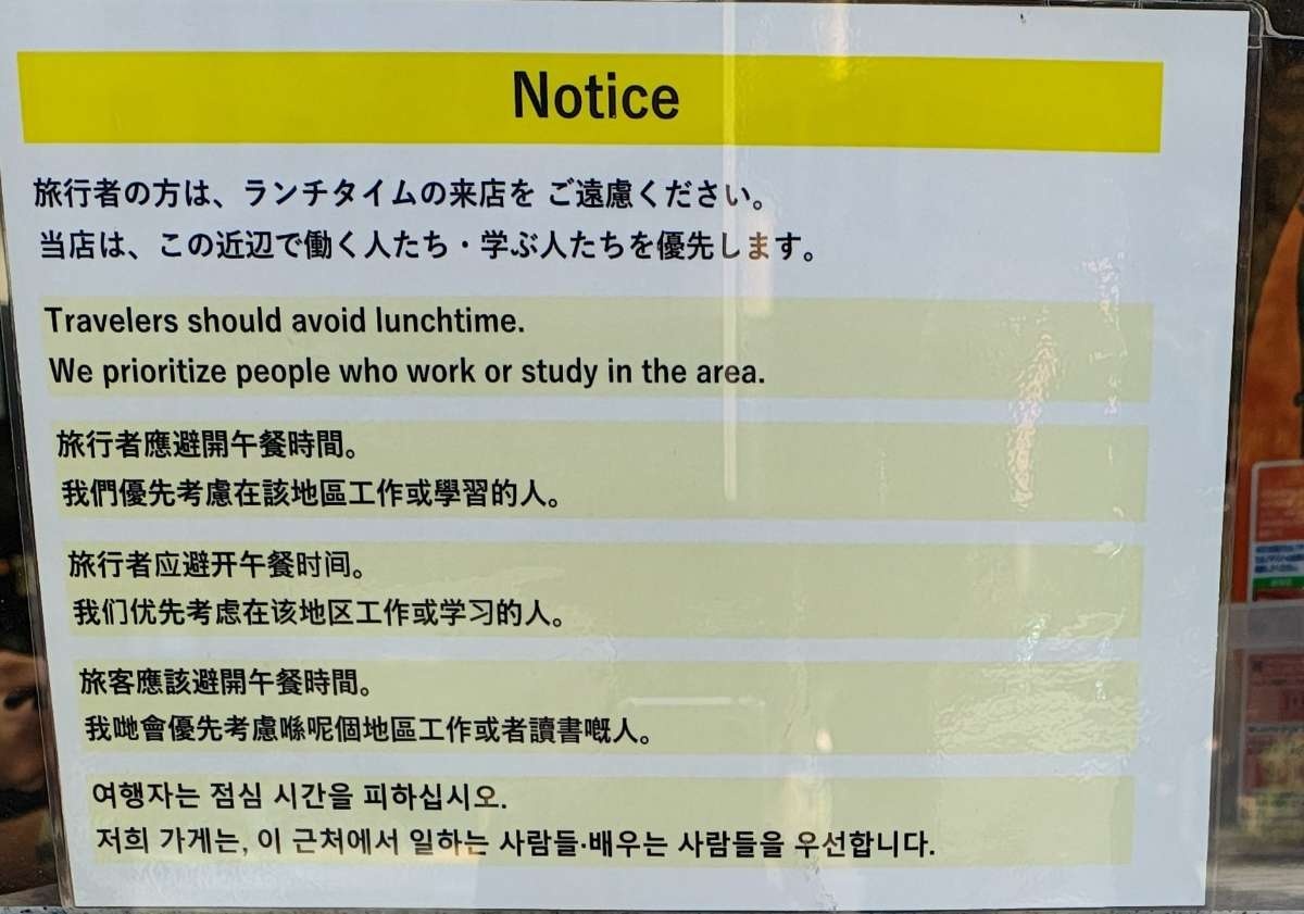 「旅行者の方は、ランチタイムの来店をご遠慮ください。