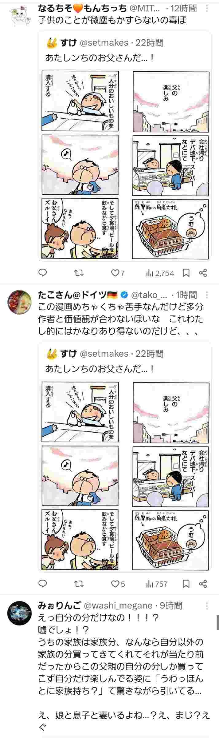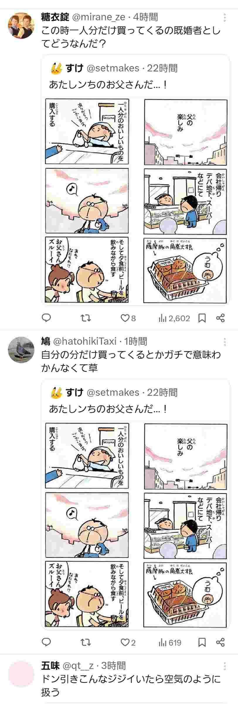 みんなの分買ってくる優しいお父さんのもとで育った割にやけに攻撃的やね🥺