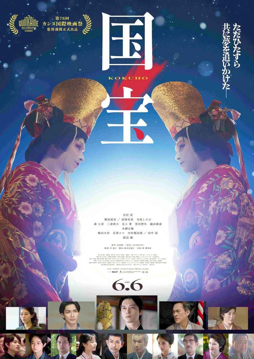 吉田修一氏の同名小説を映画化。吉沢演じる喜久雄が任侠の家に生まれながら、歌舞伎俳優の部屋子となって女形として芸に生涯をささげる物語。喜久雄のライバル・俊介役の横浜流星、喜久雄を部屋子として迎える歌舞伎俳優・花井半二郎役の渡辺謙、当代一の女形で人間国宝の小野川万菊役の田中泯、半二郎の妻・幸子役の寺島しのぶ、喜久雄の幼なじみ・春江役の高畑充希らも存在感のある演技を披露。美しく、重厚な人間ドラマに仕上がっている。