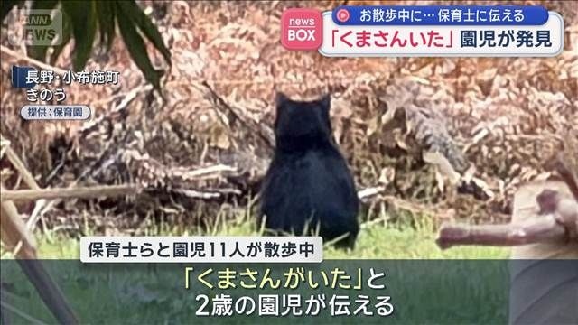 「くまさんいた」園児が発見 お散歩中に…保育士に伝える 長野