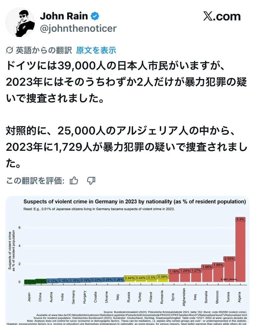 左翼が移民で犯罪は増えない!とか言ってたけど
