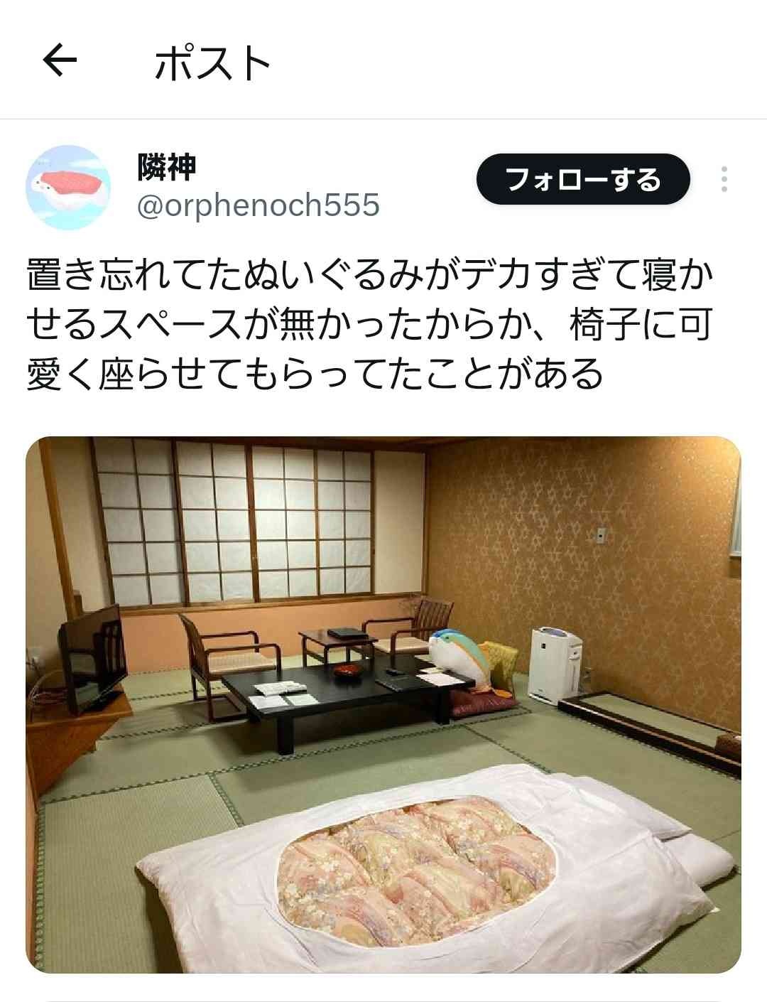 そもそもなんで宿泊施設にぬいぐるみ持って行くんだ