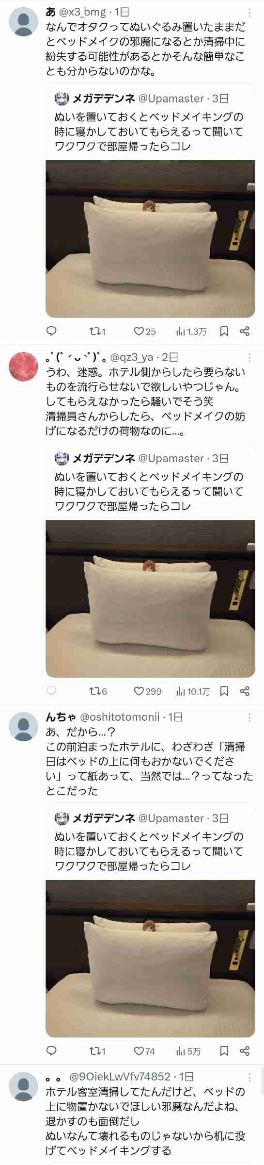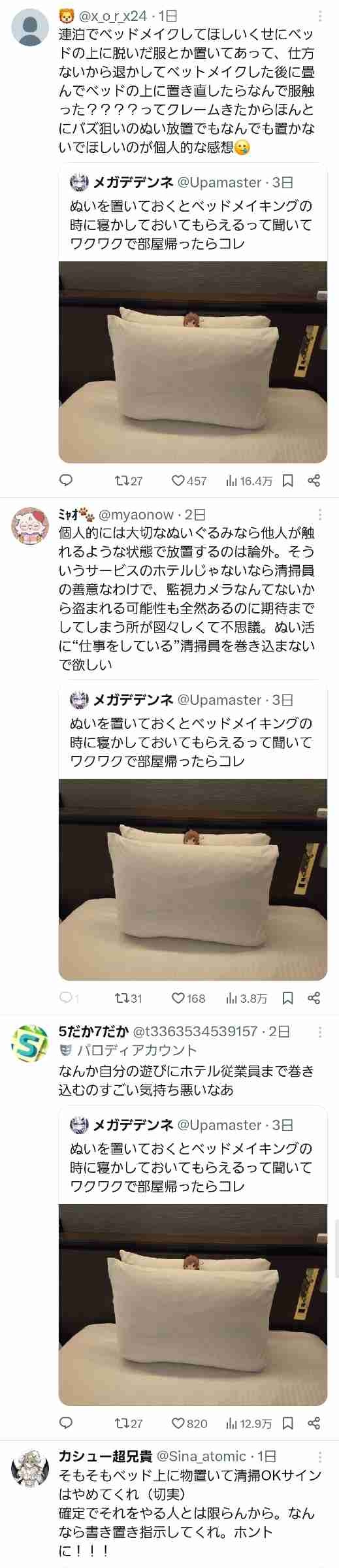 ぬい活界隈、ホテルへの迷惑行為で炎上する