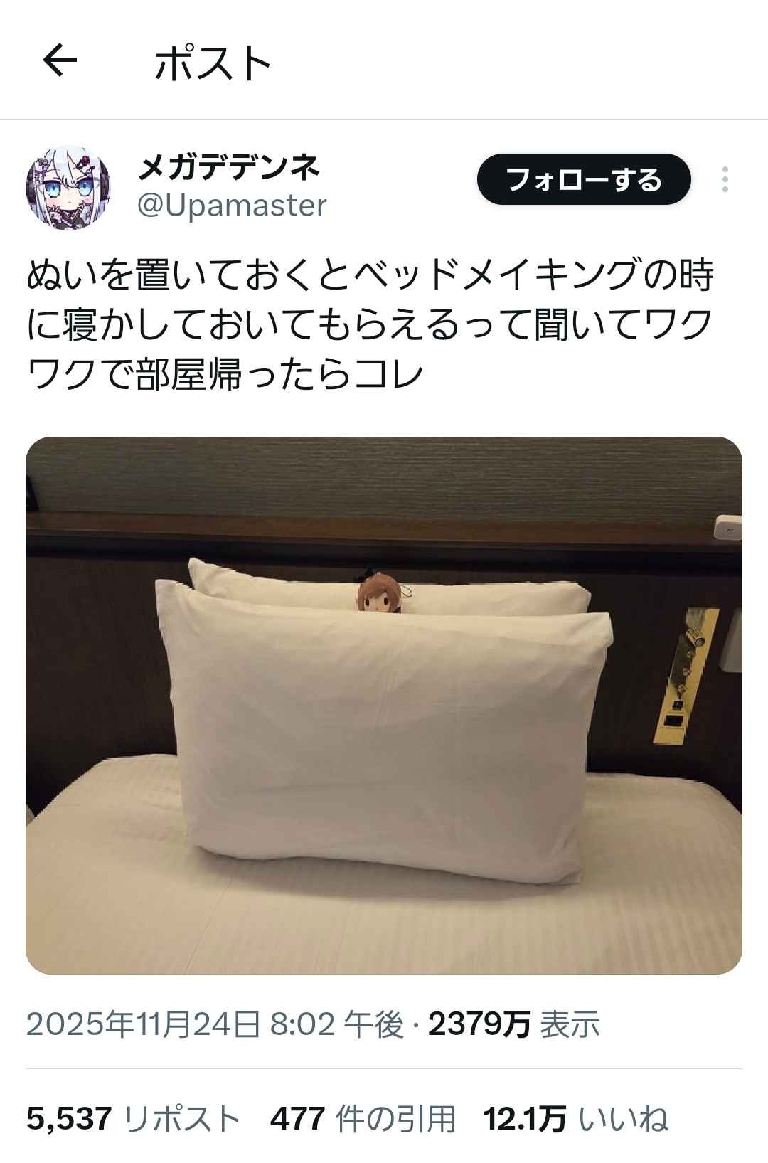 ぬいぐるみ寝かしつけるだけでいい評判流れるならホテル側も喜んでやるやろ