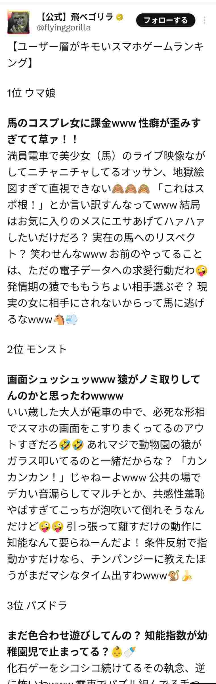 ウマはともかくパスドラモンストに喧嘩売ってるのは炎上狙い…?