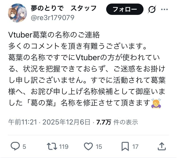 そら兎田ぺこらって名前で出てきたら確信犯やけど葛葉なんてキャラクターとしてもネットの活動者としてもありふれた名前やろ