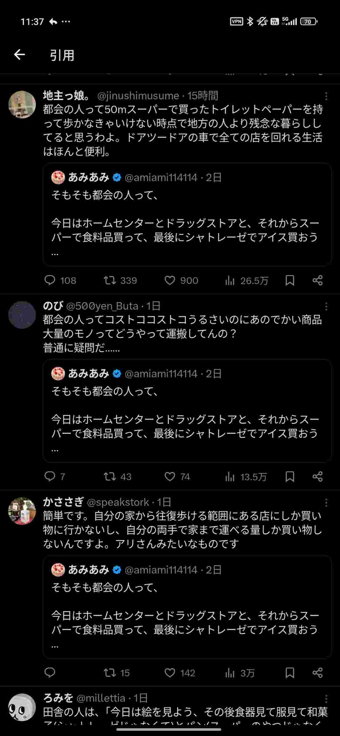 おばちゃん達が自転車の前後に荷物いっぱい載せて鬼の形相で歩いてるのとか都内の日常なのに