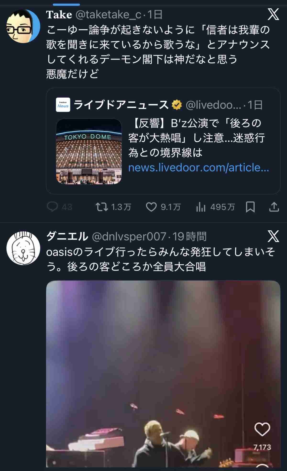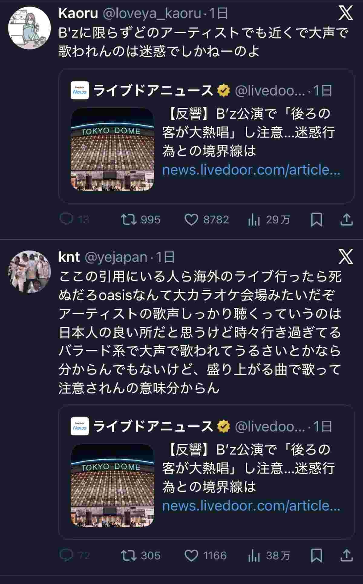【反響】B’z公演で「後ろの客が大熱唱」し注意…迷惑行為との境界線は