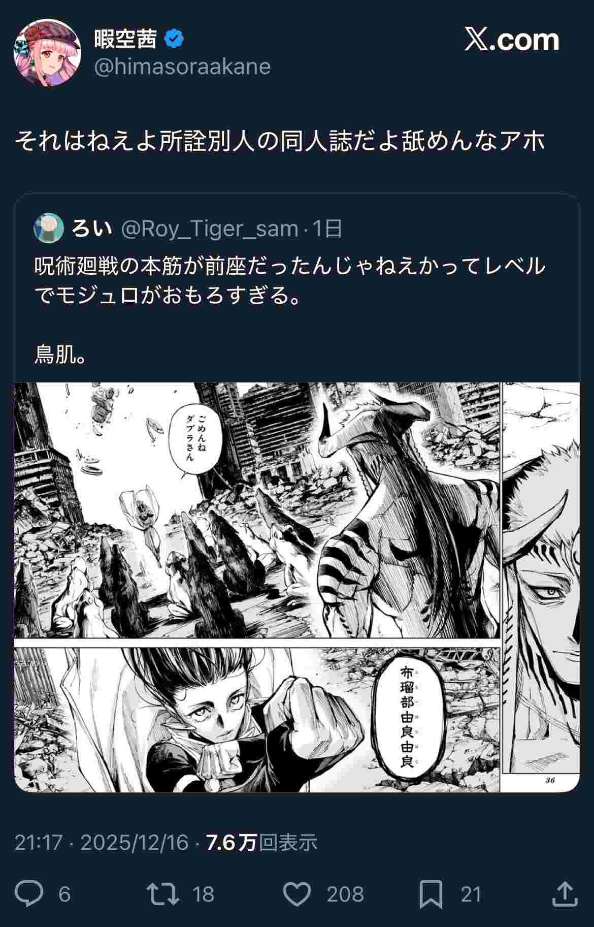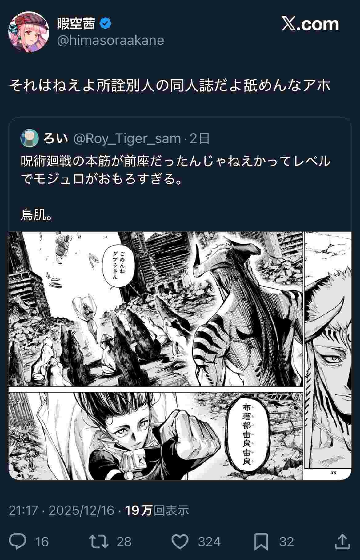 暇空茜「呪術廻戦モジュロはクソ!所詮は別人の同人誌だよアホが」