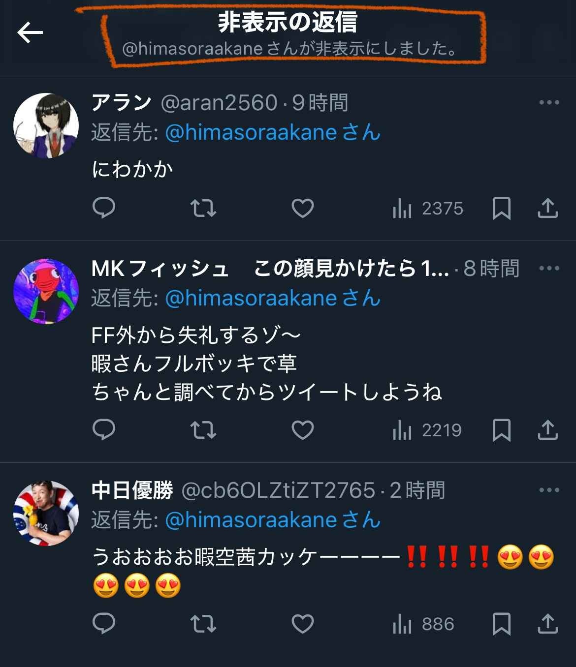 暇さん怒りの11件のリプを非表示😭😭😭😭😭