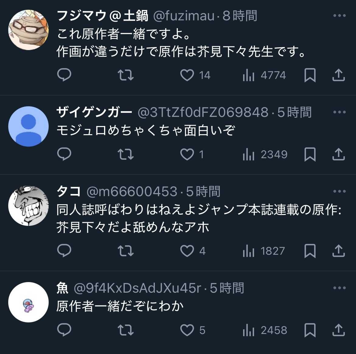 「原作者は同じ芥見下々だぞ」とツッコミが殺到してしまう