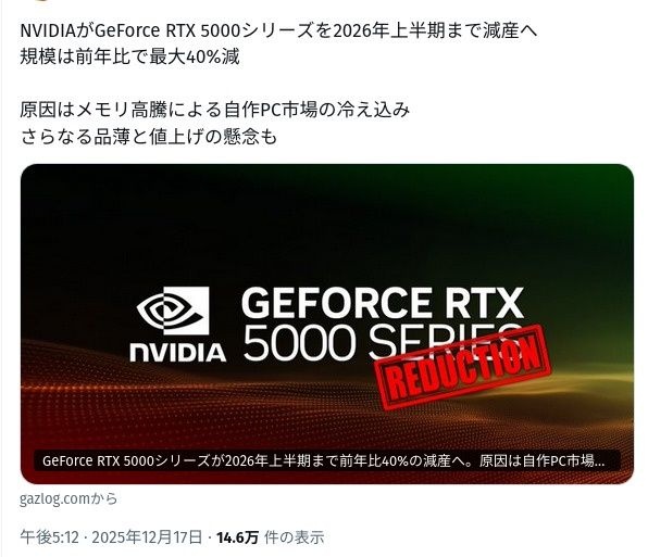 nvidiaがグラボ減産発表したから今すぐ買った方が良いぞ