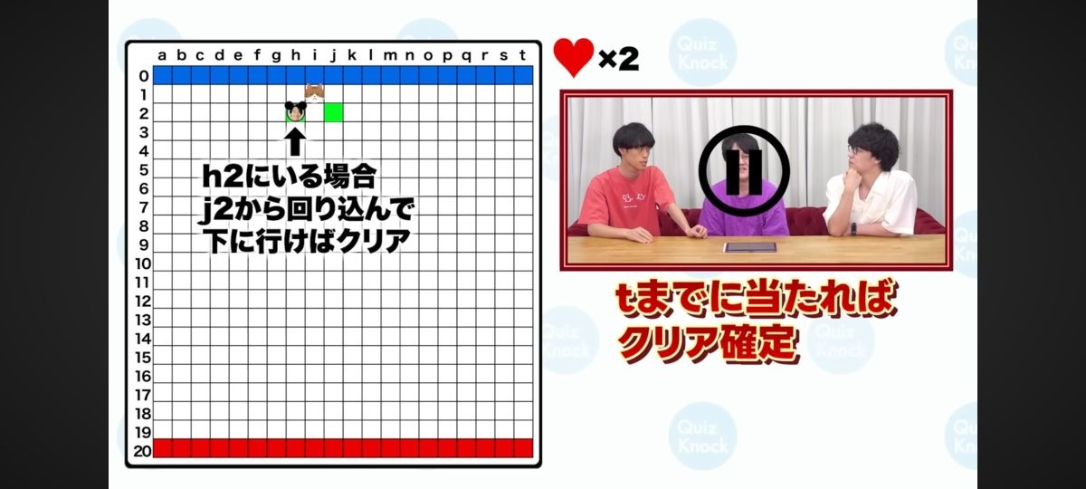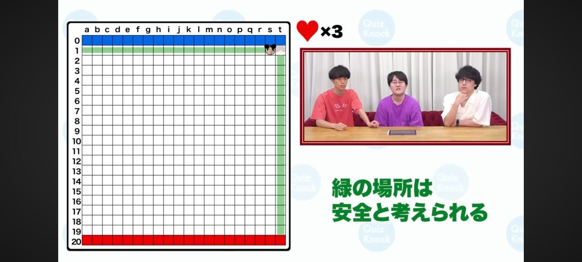 個のマスにモンスターが潜んでいる. 最初, ターボ君はモンスターがどこに潜んでいるかを知ら