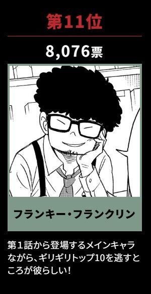 この手の人気投票にめちゃくちゃ出番少ないのに上位にいるやつ一人は混じってるイメージ