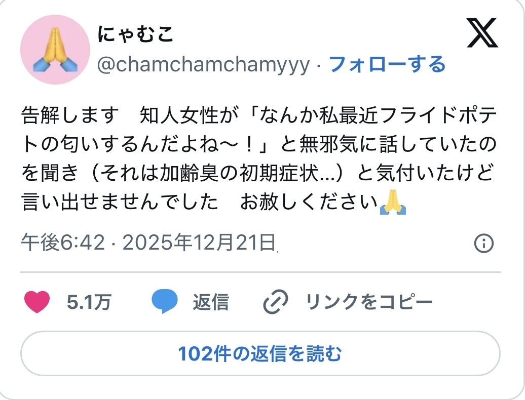 34だから加齢臭なんだけどな