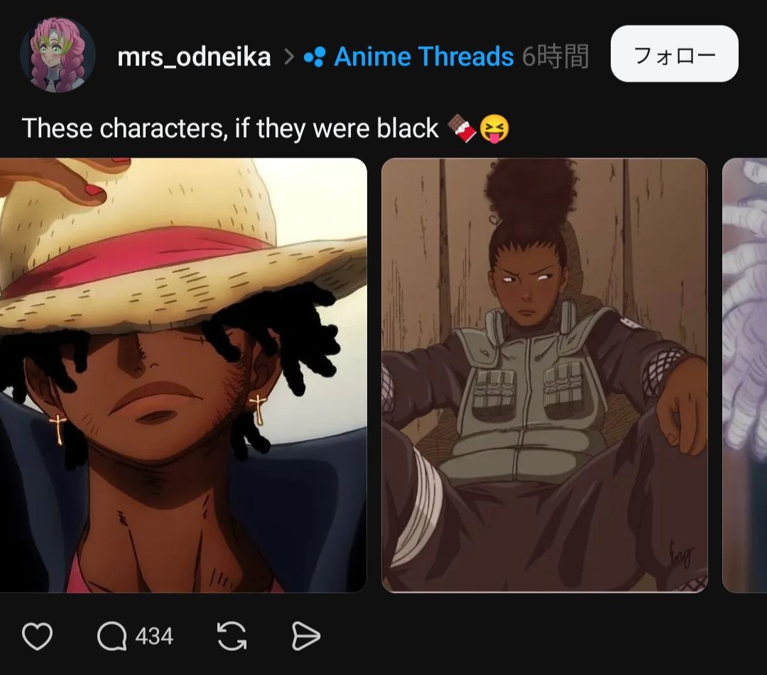 白人に見えるアニメキャラを黒人化するってそういう事やろ?