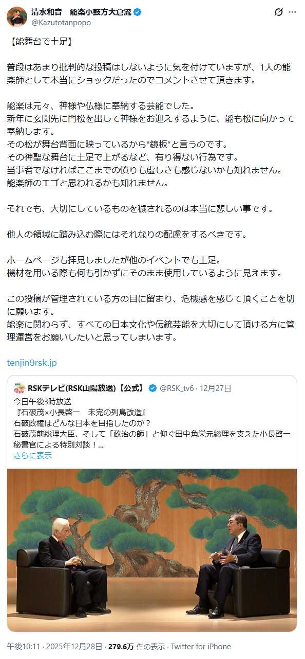能楽師側が先に山陽放送に注意しとけば良かったのに