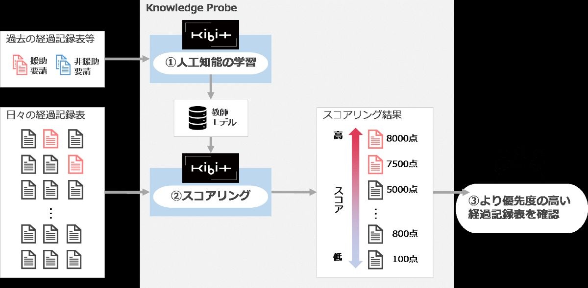 ①過去に重篤化したケース等の記録をKIBITに学習させる。