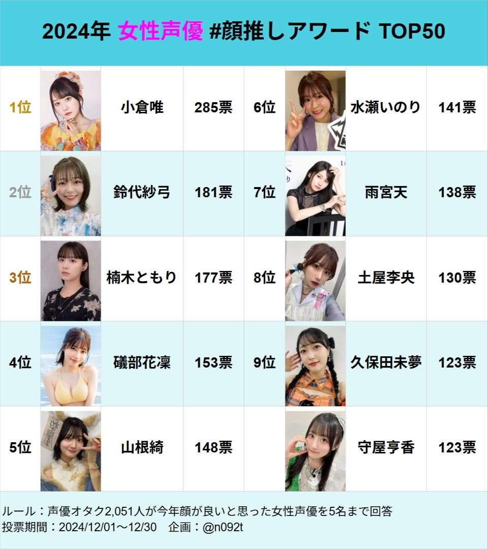1位と4位と5位と10位知らないんやがソシャゲ専業系声優なんか