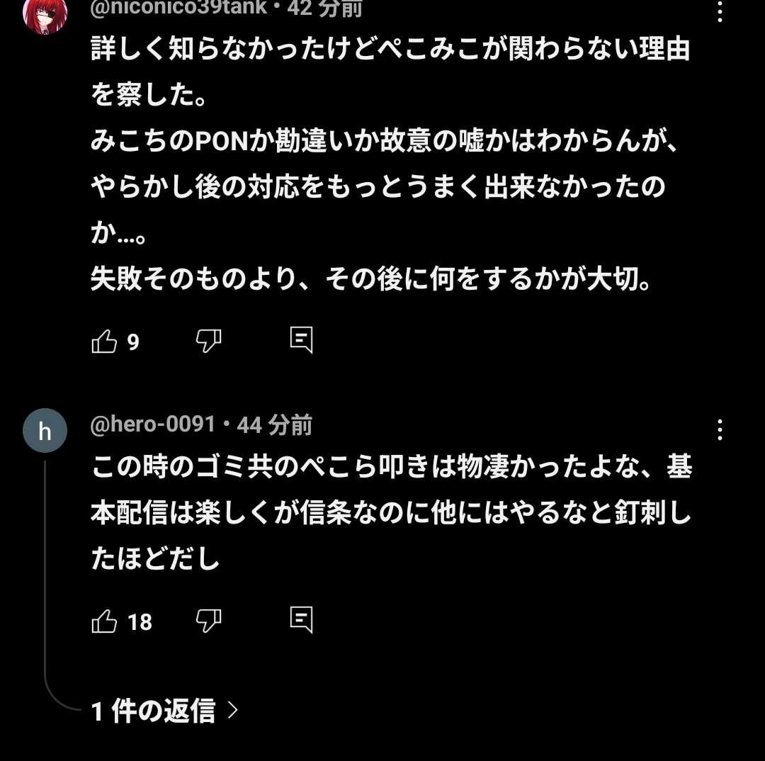 今もみこちのファンがぺこらに粘着して誹謗中傷してるし何も学んでない