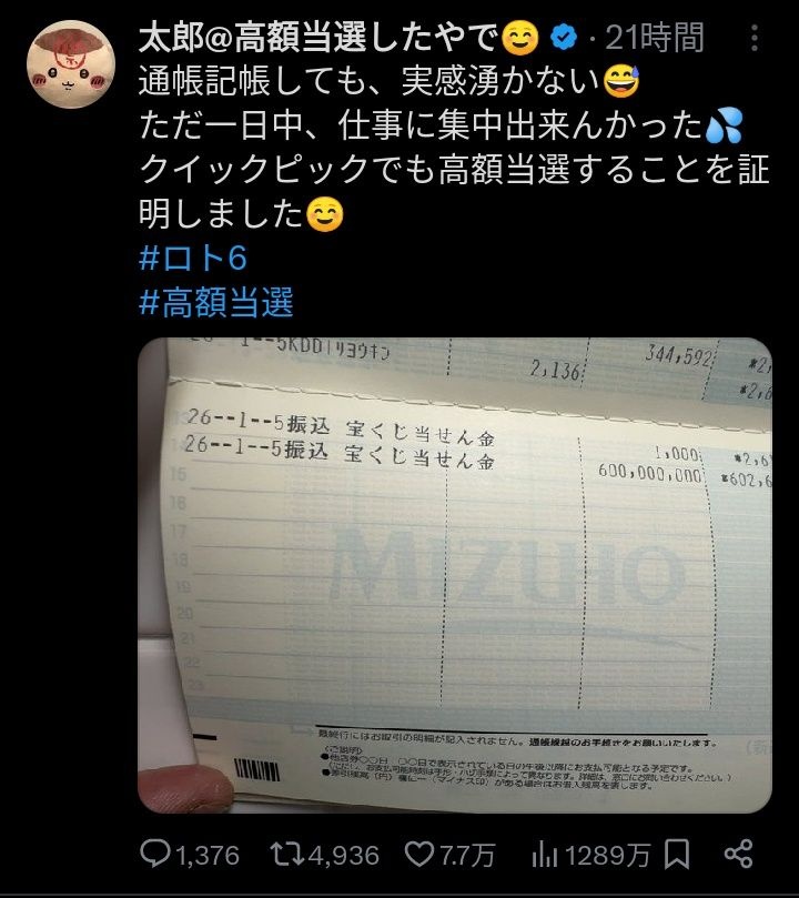 宝くじはともかくロトは当たるんやなって…