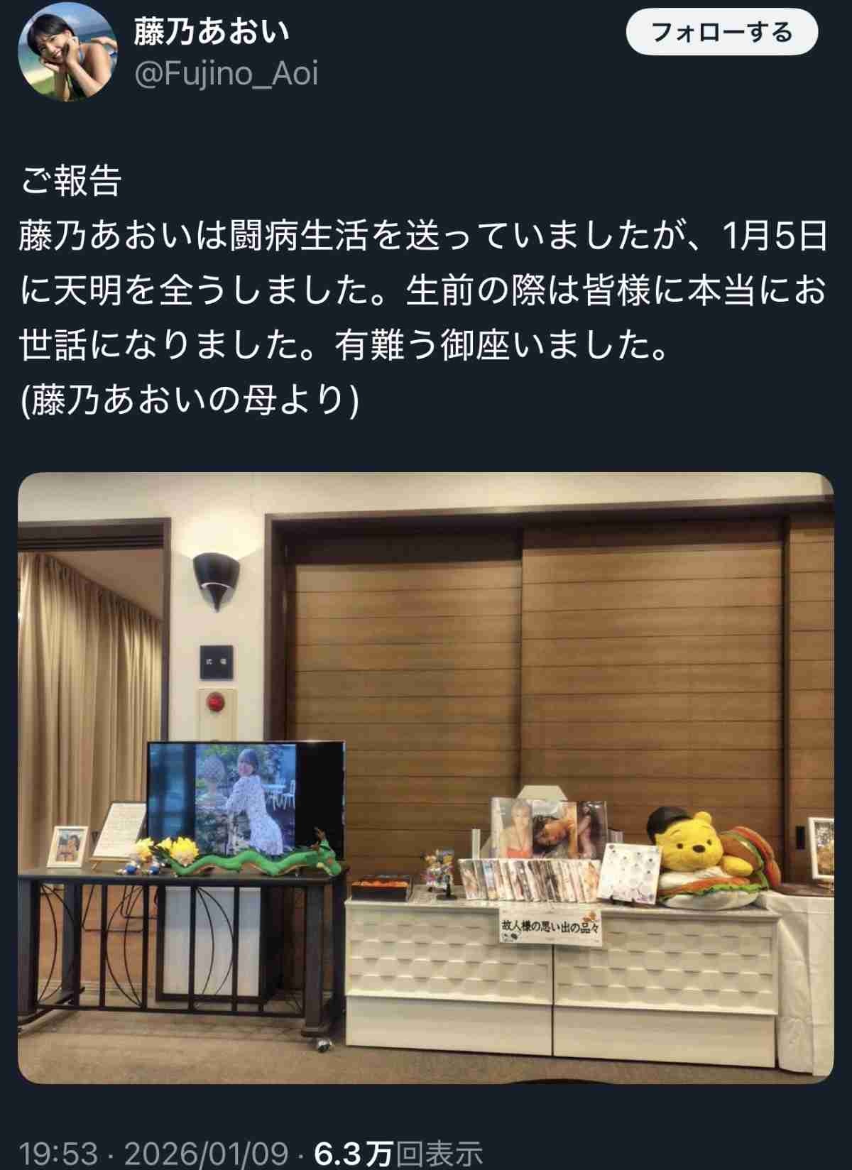 藤乃さんは2020年7月にデビュー。24歳だった23年4月に希少がん「副咽頭間隙腫瘍」と公表し、治療に専念。 その後、24年8月に芸能活動を再開した。 昨年3月末で所属していた事務所を退所し、フリーで活動していたが、同年7月に年内での芸能活動引退を表明していた。