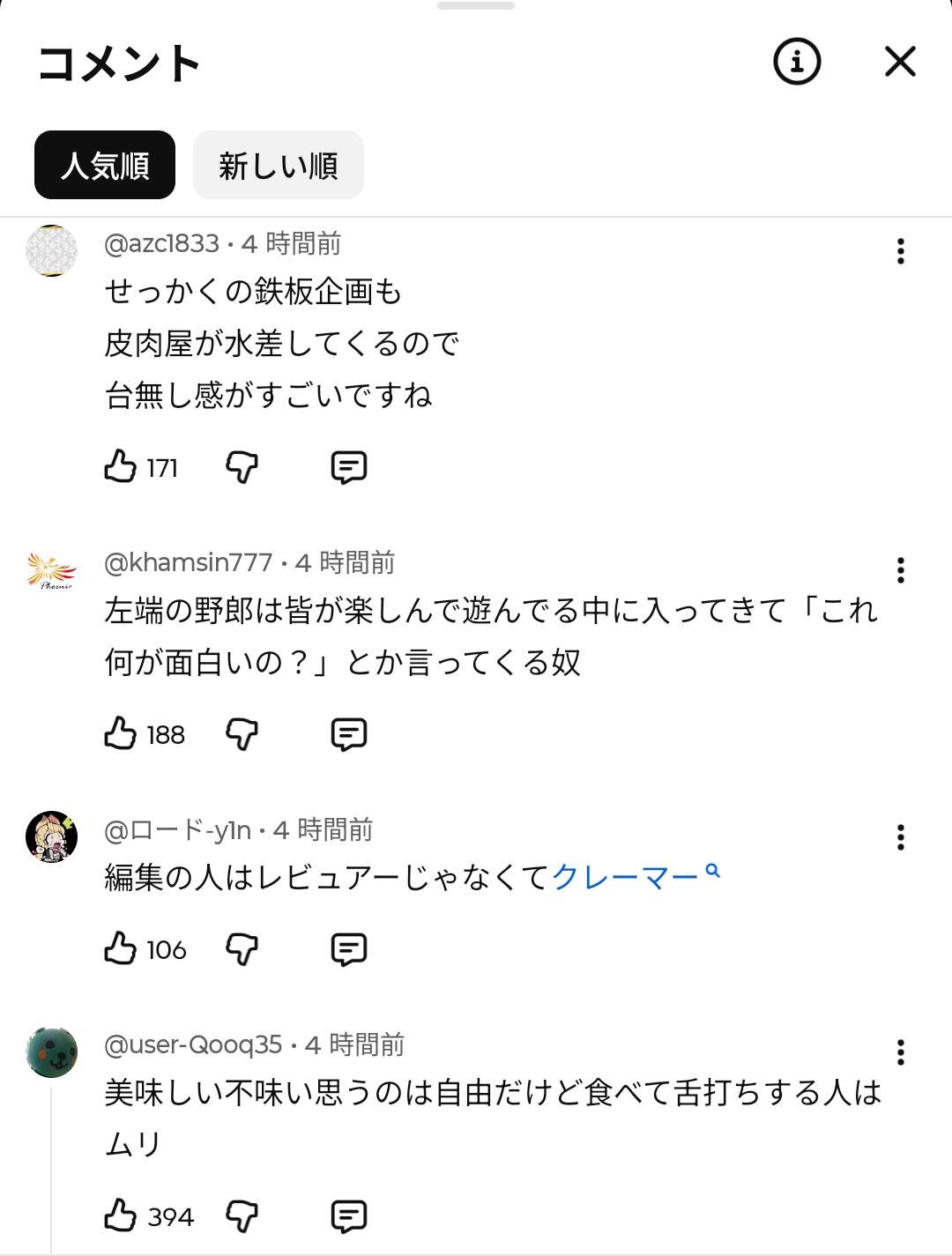 うまい棒みたいな全国民が食ってるものに低評価ばっかつけてたらそら反感買うよ