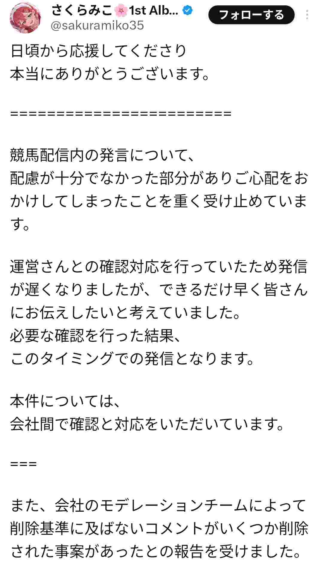 【報告】ホロライブVTuber・さくらみこ、約一週間の活動休止を発表