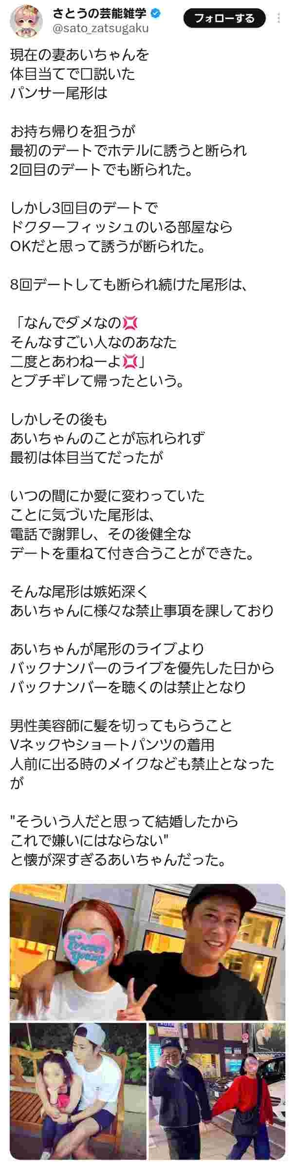 パンサー尾形、妻へのモラハラが判明し炎上する