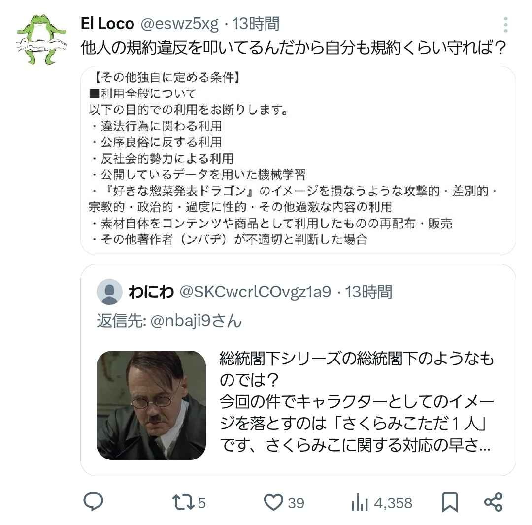 この件に関して変な言いがかりがあったので伝えますが、さくらみこ氏について有名な活動者なので何度か配信は見た事ありますが、興味はなく、ファンでもアンチでもないです