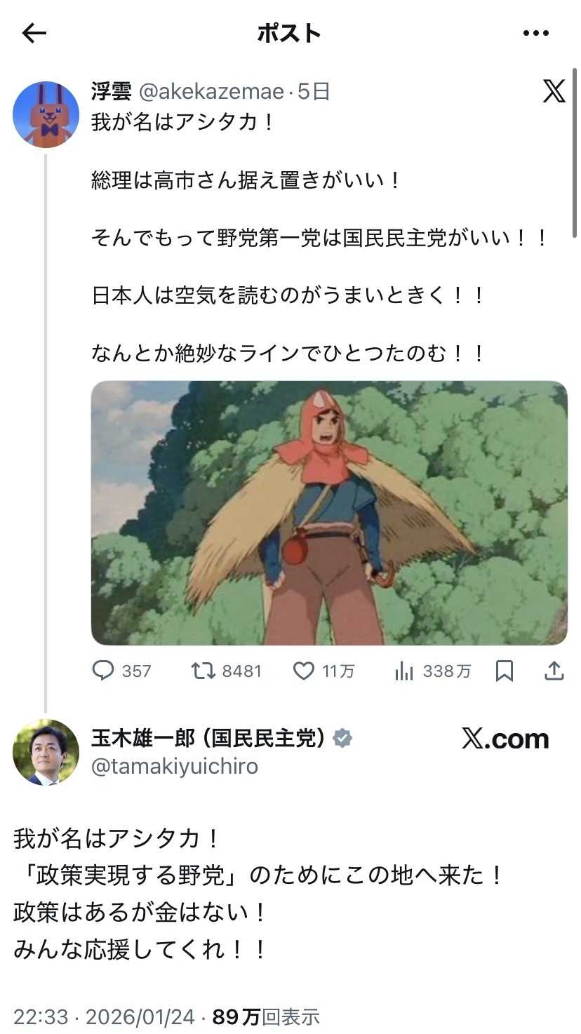 宮崎駿は国民民主推しなんやな