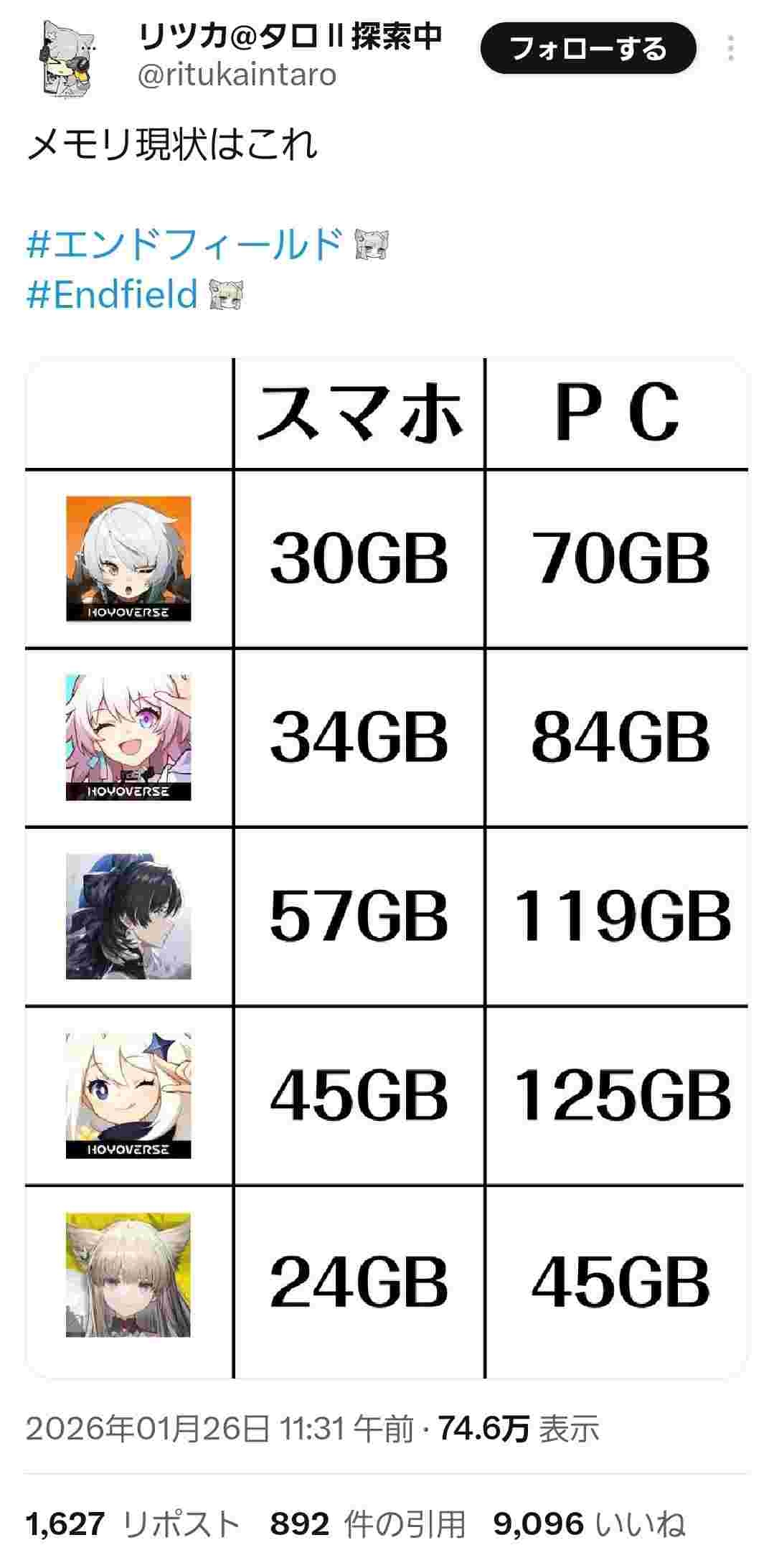 どちらにしてもソシャゲのサイズとしておかしい