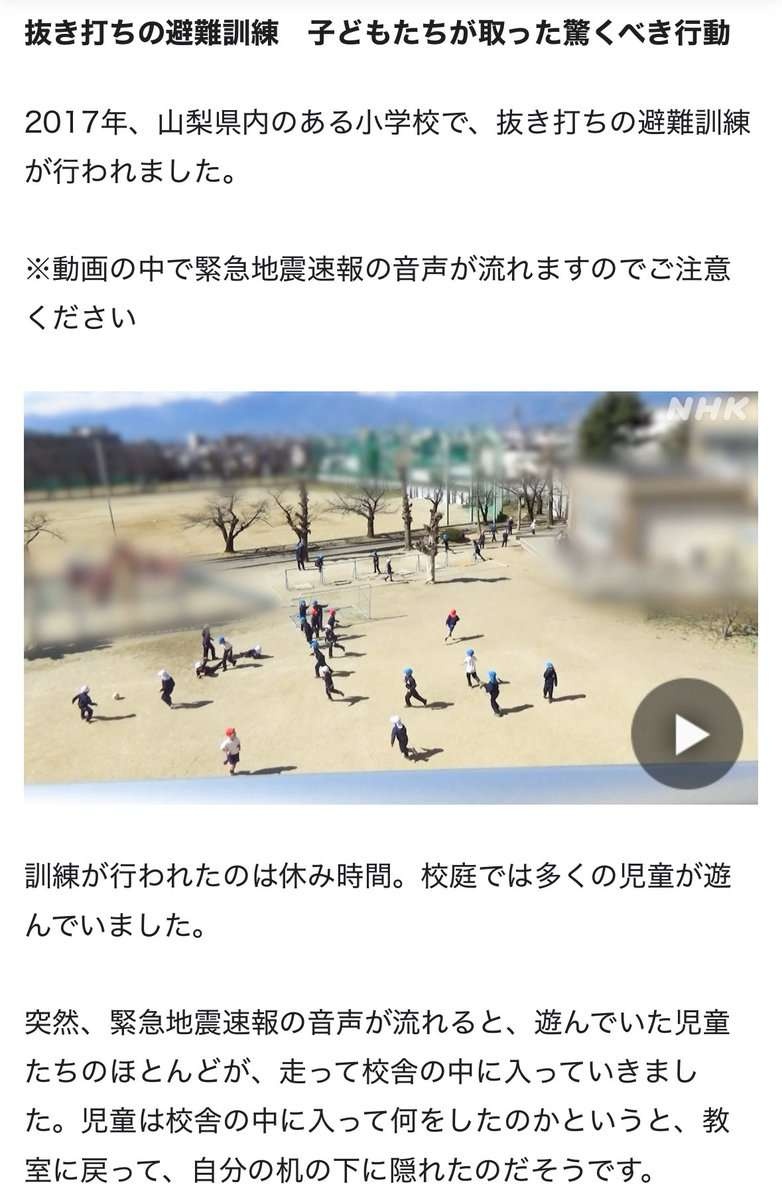 本当に地震が来たら屋内に戻る必要はないってことは流石に子供も理解しとるやろ