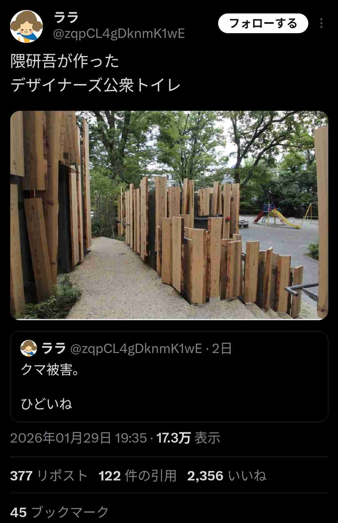 隈研吾、うんこをブチ撒けたみたいなトイレを作り大炎上www